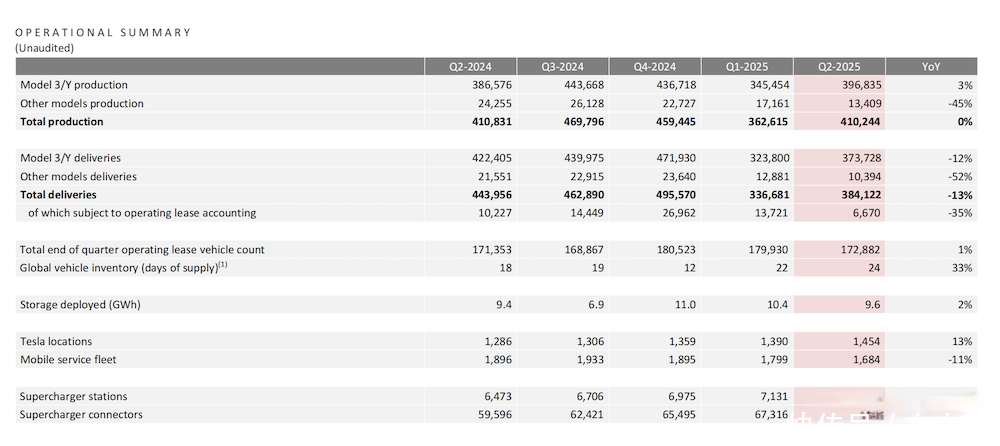 可以说,上半年特斯拉的财务表现稍显弱势,这也和销量下滑有关,特斯拉上半年共生产新车77.29万台,同比下滑8%,交付新车72.08万台,同比下滑13.2%。