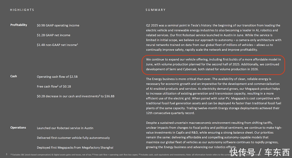 该公司表示,它还在继续开发特斯拉Semi和Cybercab,预计将在2026年投入批量生产。